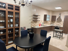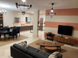 الشقة طابق ارضي معلق تشطيباتها سوبر ديلوكس / ارضيات بورسلان / زجاج دبل جلاس / اباجورات كهربائية راكبة للشقة / مشمسة ومهوية ولا تحتاج الى صيانة / راكب (4) مكيفات .
