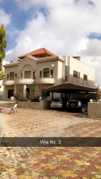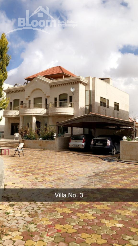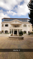 الفيلا الاولى الكبيرة على مساحة ارض (1150) متر ، مساحة بناء (1400) متر ، مكونة من ثلاثة طوابق وروف ، (6) غرف في كل غرفة حمام ، (3) صالونات ، وترسات وفايربليس ومصعد ومسبح داخلي .